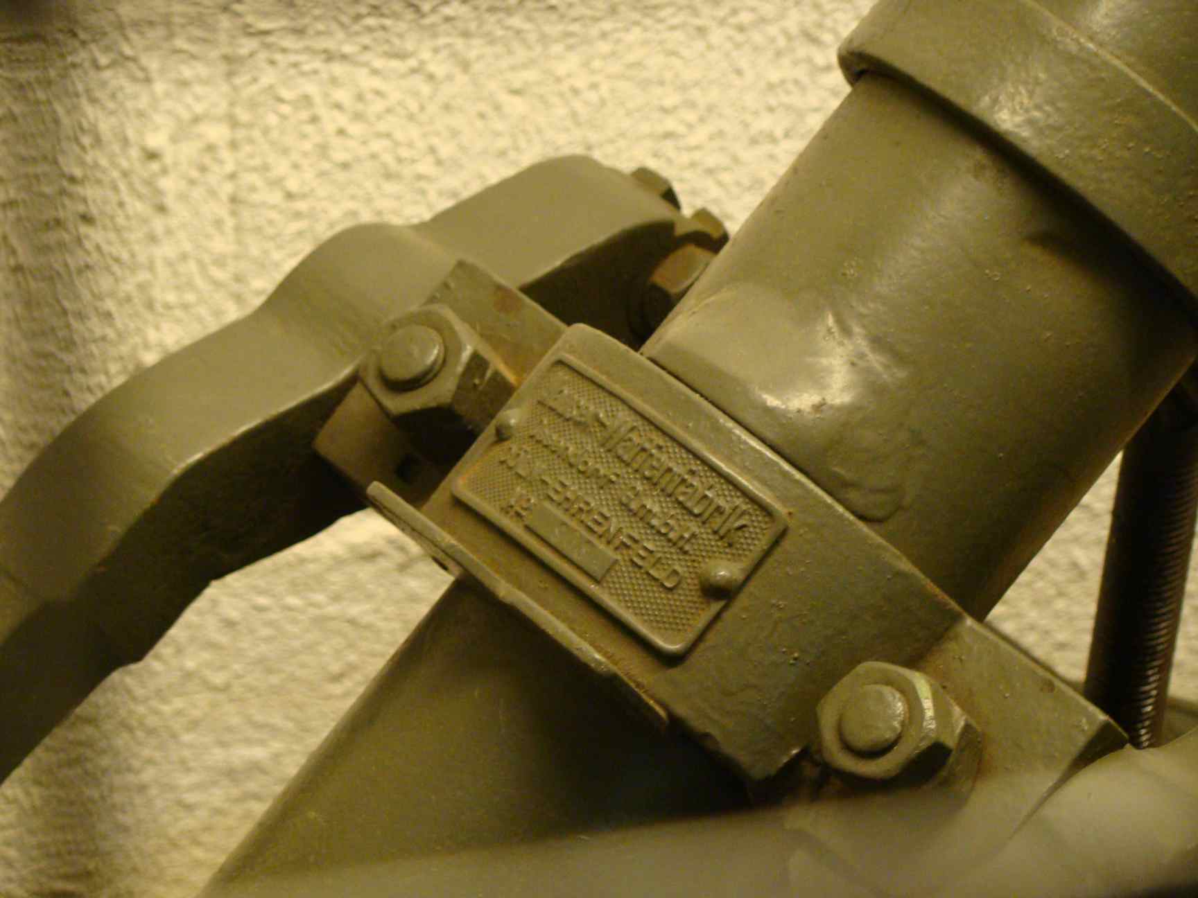 Nice and rare mortar in this interesting underground museum. See the thick pin blocking the breech, and the long cylindric projectile near the weapon
