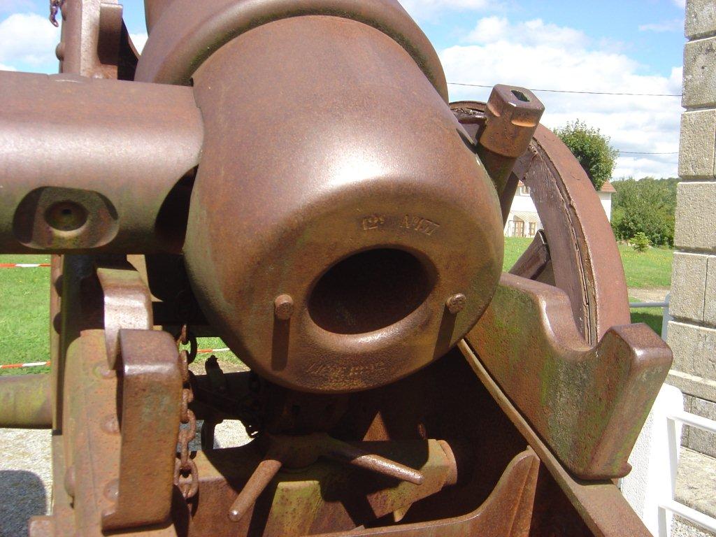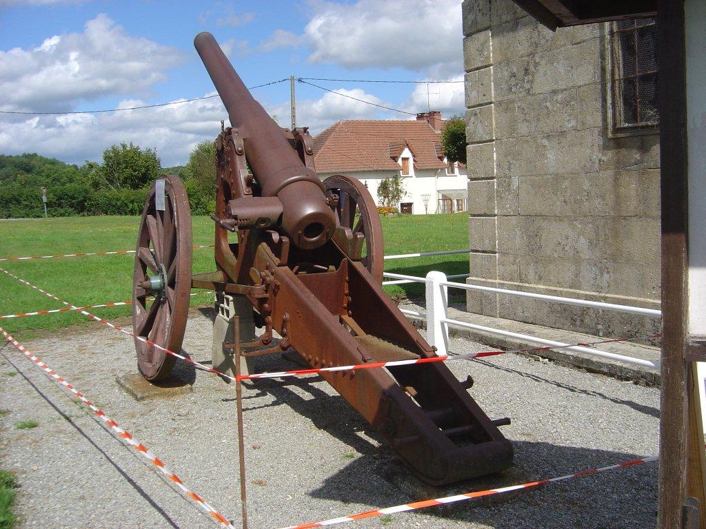 Donated by Joseph Despagnat, weapons enthusiast living in Banize and whose son was killed in action during WW1. It seems he received this gun from his friend the France President Gaston Doumergue in around 1922. 3 pairs of beefs were needed to bring this heavy gun from the Aubusson train station where it had been delivered, to Banize.