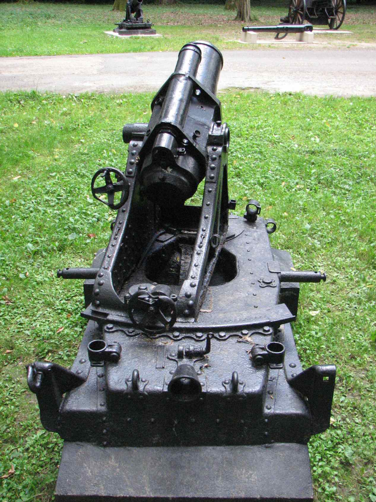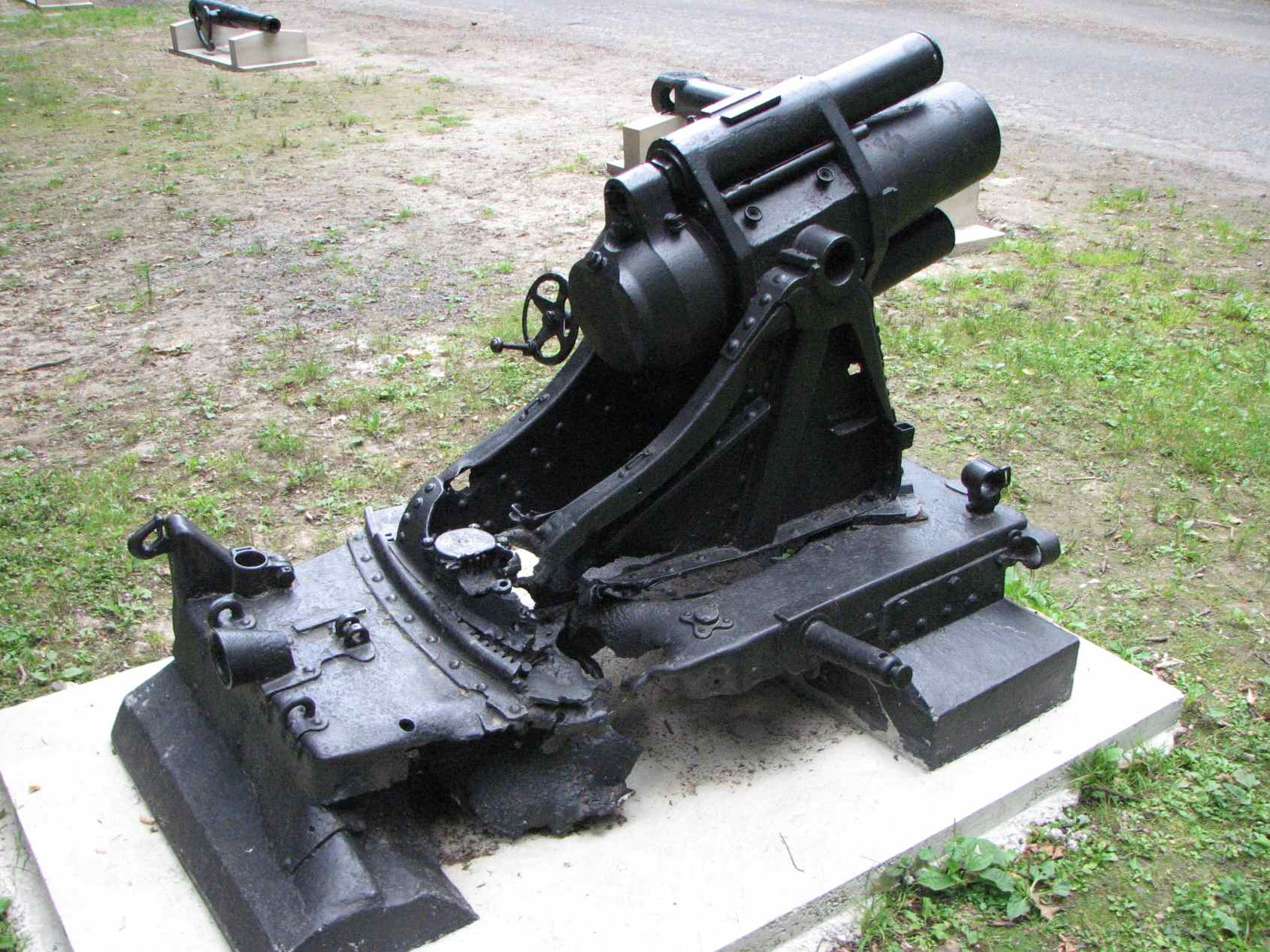 The second minen is blocked in maximum right position, letting us appreciate the horizontal range of such a mortar