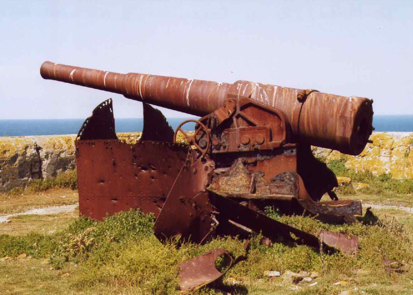 Before being used by the Gremans as a coastal defense gun, this weapon surely has been used on the Schneider wagon TAZ during WW1. It still has remnants of the turret