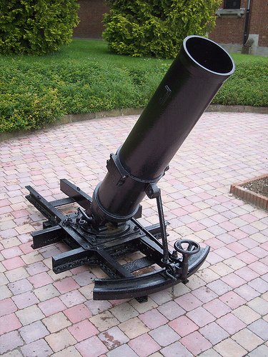 The French army was the first to introduce, in the middle of 1915, the concept of a smoothbore trench mortar firing fin tail stabilized heavy 85 kg bomb, with its 'Mortier de 240 CT', replaced in 1916 by the elongated 'Mortier de 240 LT' allowing considerable ranges over 2 km.