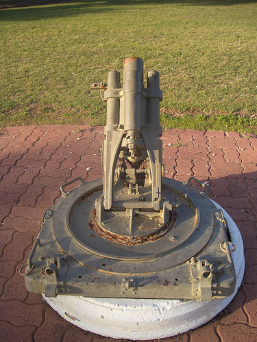 At the same period, the 7.58 cm lMW n/A was equipped with a tail and spade that allowed the infantery to use this small mortar as a flat trajectory fire weapon , particularly useful in an anti-tank role.