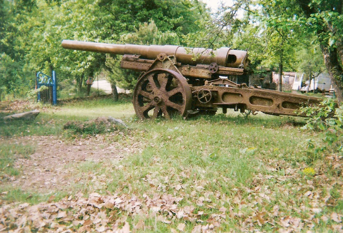 This nice gun, although with a somehow old-fashioned bronze jacketted barrel, was giving very long ranges around 20 km particularly well adapted to the harassment and counter-battery fire. Its mobility, however reduced by the important weight (over 13 tons) that made it necessary to be transported in two separate loads even with the mechanized towing, allowed it to come relatively close to the front lines, involving the presence of a pretty imposant shield.