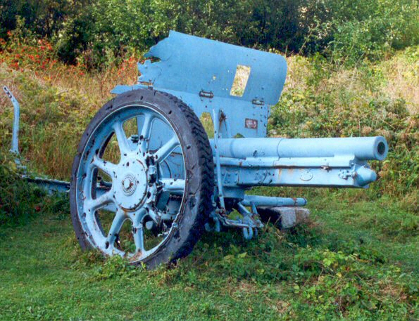 Damaged item, the wheels are most probably not from WW1 era. Like several of this museum other artillery weapons' it looks like this Italian gun has been used during WW2 |