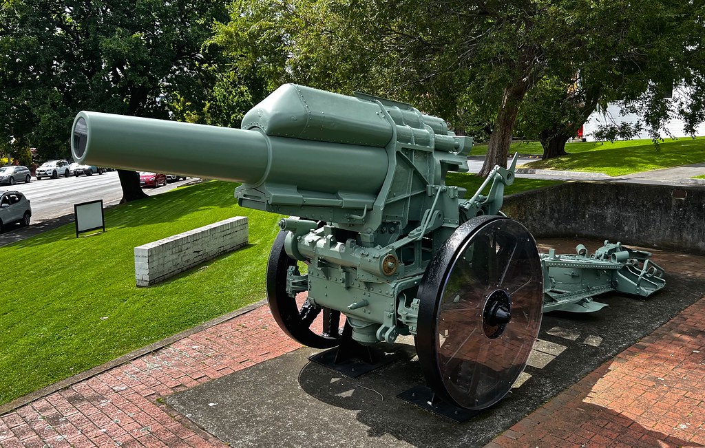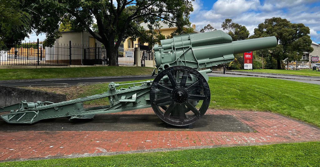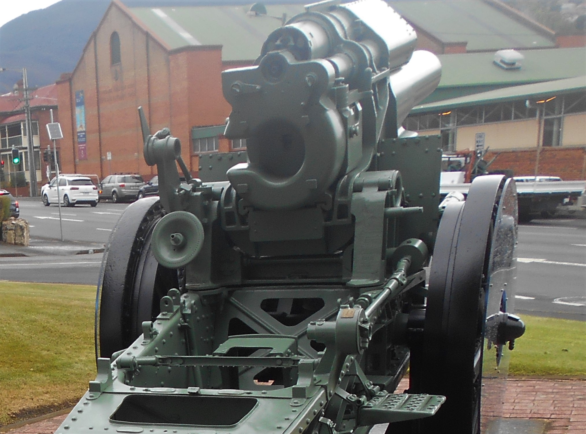 The Der Morser sat for many years at the Hobart Cenotaph before being relocated to Brighton Camp. From there it moved to the Gun Park at Anglesea Barracks before it was moved to its current location at the front of the Barracks complex, facing Davey Street. The gun was thoroughly restored and is in pristine condition (as of January 2020).