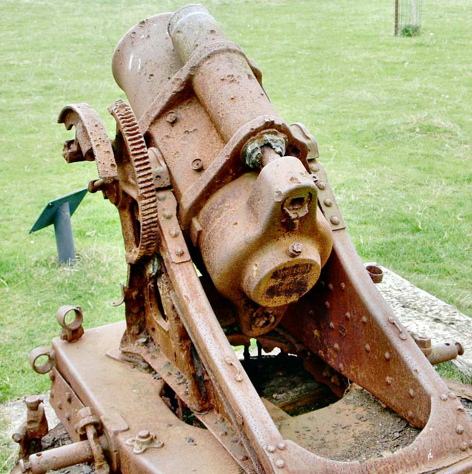 The 250mm heavy model appeared first in 1910 and was tested until 1911, date when it started to equip the Pioneers units specialised in the siege warfare. This '25 cm sMW, ' ('sMW' = 'schwerer MinenWerfer' = heavy mine launcher), later named '25 cm sMW a/A' to differenciate it from the improvement appeared in 1916 ('a/A' = 'alte Art' = Old version), was a modern weapon, equipped with recoil recuperators, a rifled barrel (6 grooves), muzzle loaded and using separate propulsive charges that were fired by a friction primer (later electric) inserted at the gun base.
