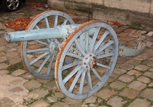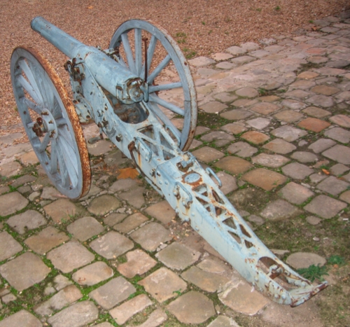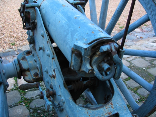 View on the typical de Bange system breech. A second piece, without its breech ivisible on the same place (Fabrication : J. Sturmlinger, – Le Havre 1883 – N°78).