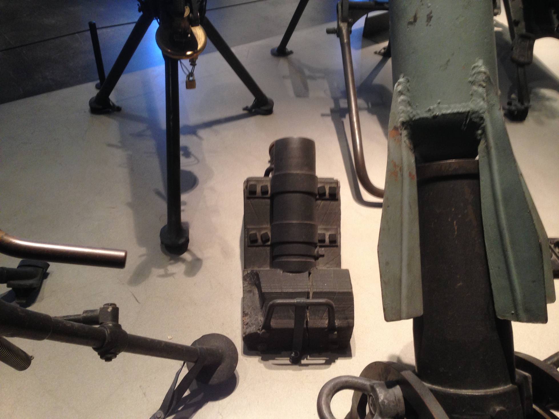 This 'Mortier Cellerier' shot its first projectile on the front line on November 4th 1914. The range was adjustable by changing the propulsive charge weight and the wedge angle (inserting wood planks under it...)