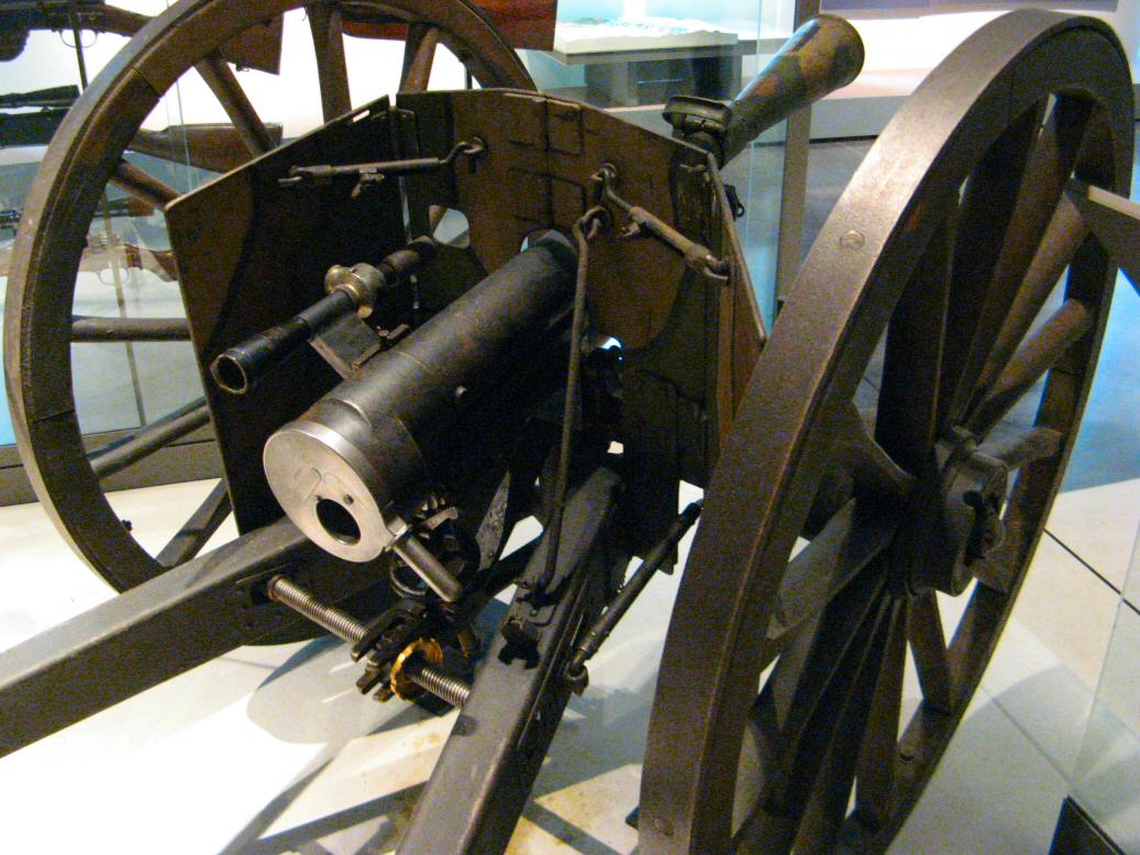 Zoom on the Nordenfelt breech, and the optical aiming system looking like a sniping gun one