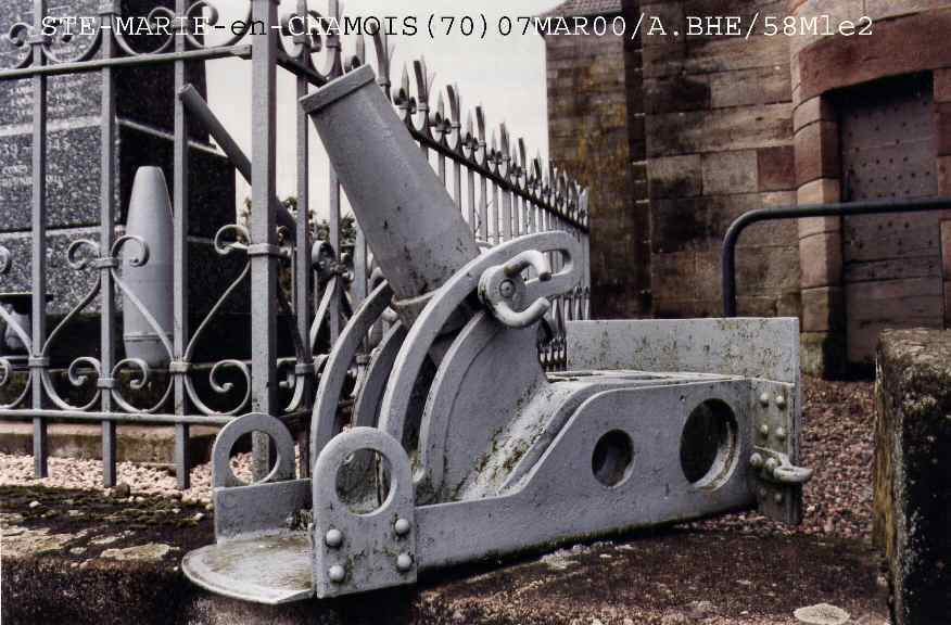 In the Haute-Saône department, if you take the D 6 road from Luxeuil-les-Bains in the direction of Rupt-sur-Moselle, there is a succession of 6 surviving trench mortars 58 T N°2 in the 3.5 km length between the villages of Radon-et-Chapendu and Ste-Marie-en-Chanois