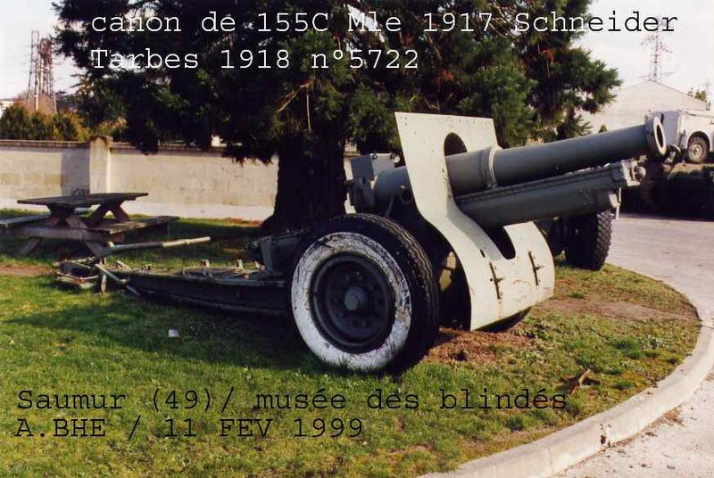 The early Mle 1915 model was very soon transformed into a Mle 1917 (Canon de 155 C Mle 1917 Schneider), to shoot rounds with powder bags (with a modified plastic obturation breech block) instead of cartidges (for economical and logistic reasons).