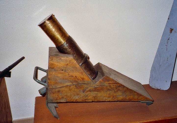 Nevertheless, the French soldiers were faced from the early 1914 war days to the powerful German minenwerfers, without any possibility to answer back. On the Argonne sector particularly crushed by these mortars, the Captain Cellerier improvised a 'DYI' mortar made with recycled material : he used a German 77 mm shrapnell shell body mounted on a wooden wedgehaving a 45 degrees angle to launch projectiles made of French 65 mm mountain gun shells, whose diameter is by chance similar to the inner diameter of the German shrapnell light shell, filled with explosive and various shots types.