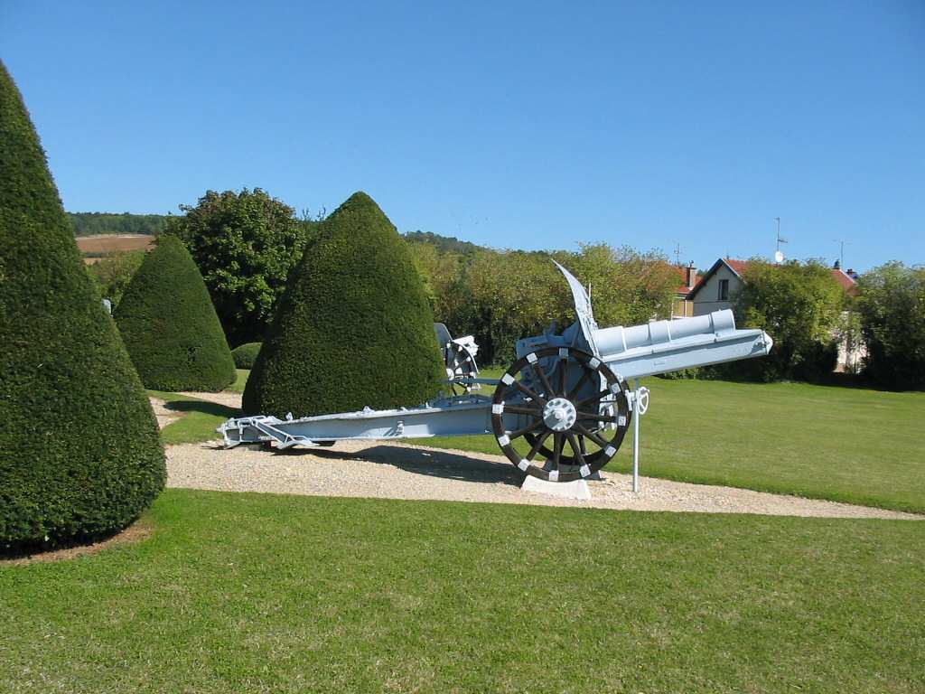 This howitzer exposed in Verdun is in a pretty good shape. Of course, the pale blue color is not realistic.