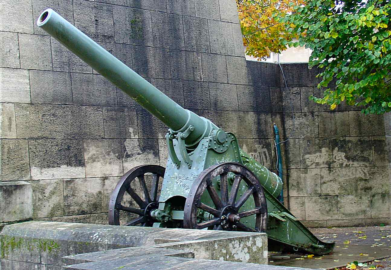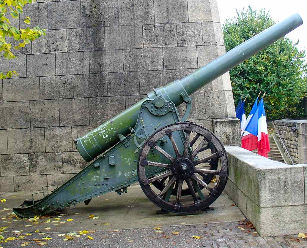 There are two identical guns on the sides of the Peace Monument built on a high place of the town. They were certainly captured by the German on the east front, then used on the west front by them |