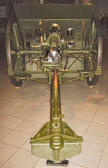 The range issue could only be solved (7132 m) by digging in the tail end into the ground, before it was finally fixed thanks to the substitution of the pole trail with a polygonal one on the Mk IV on Mk III carriage version (that was indeed a brand new gun that only participated in the late battles in small quantities).The Mk I carriage hydro-spring recuperator weakness was fixed during the war by the addition of a oil reservoir box at the front end of the cylinder, then by its substitution with a new hydro-pneumatic system on the Mk II carriage (that gave to the break front end a characteristic torpedo-like shape).