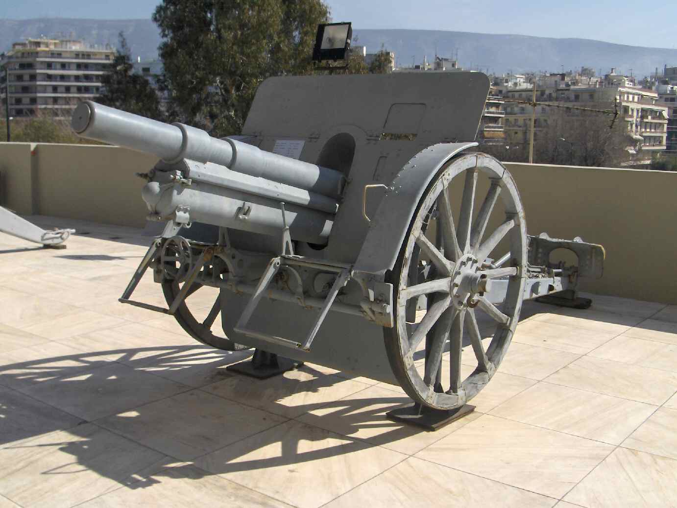 After the end of WW1, this light howitzer was modified by Austria in order to make it towable by automotive means (with rubber wheels). Czechoslovakia also kept this weapon with a significant elongation of the barrel in order to improve its range and used it until 1945 as one of its standard weapons. This post WW1 version named 10cm M14/19 FH was also exported in numerous countries including Greece and Poland.