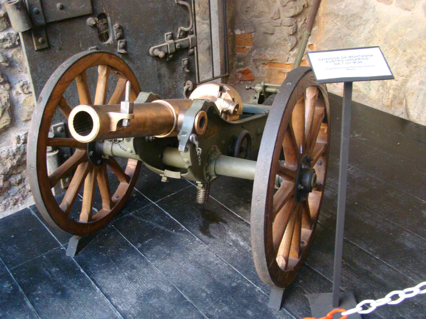 The gun is exposed in the central court of the old medieval castle that shelters the fantastic WW1 museum of Rovereto. Markings could not be noted |