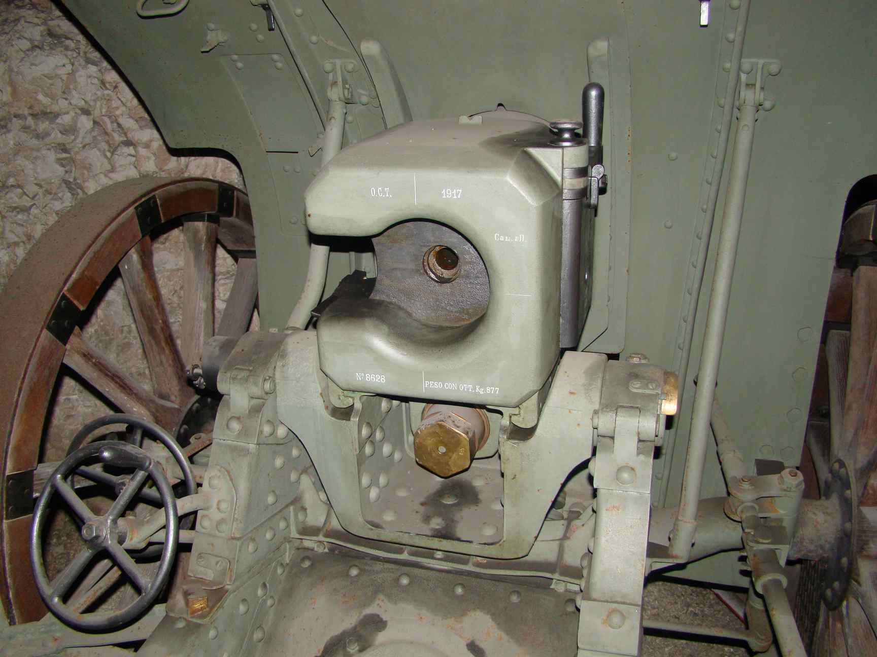 The breech markings ('OCT - 1917') prove Italy continued to manufacture those excellent howitzers during WW1 and used them against their ancient designers allies