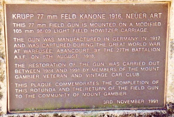 Captured by the 27th Batallion AIF in Warfusée, Abancourt, France, on August 8th, 1918