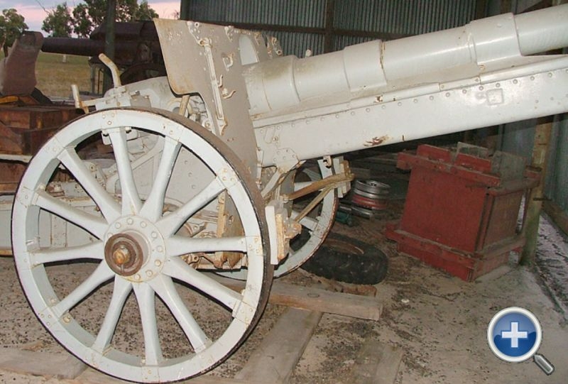 A 15cm sFH 13 lg. serial no. #60. This is a short barrelled howitzer converted to the longer barrel. Captured by the 26th Battalion AIF on 10 Sept 1918 at Villers-Bretonneux.