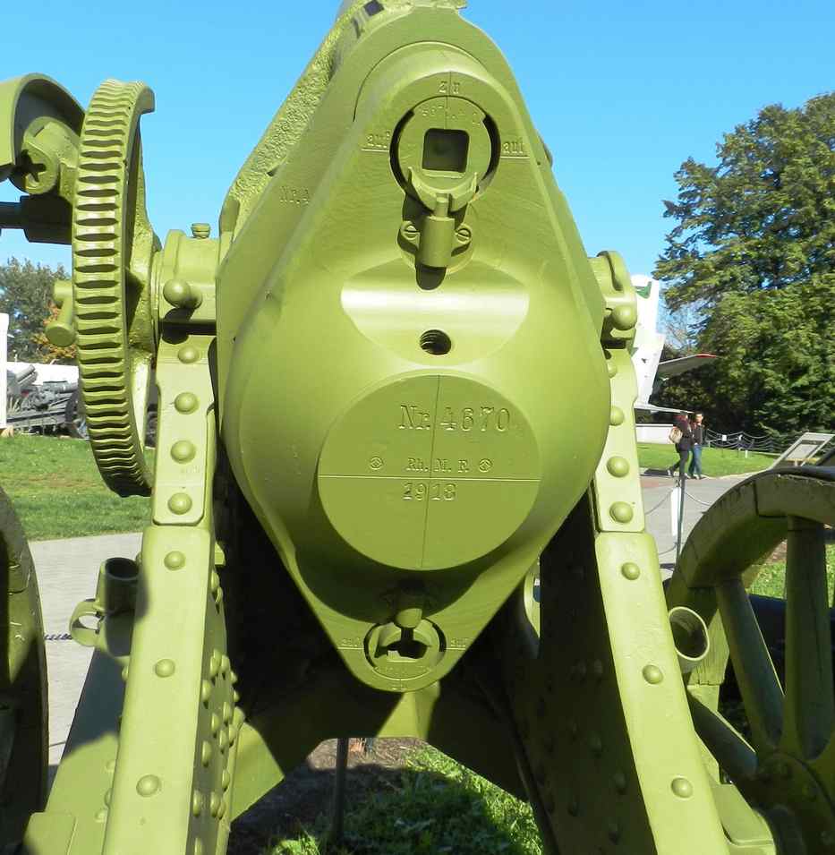 From 1916, RheinMetall delivered a new model named '25 cm sWM n/A' ('sMW' = 'schwerer MinenWerfer' = heavy mine launcher; 'n/A' = 'neue Art' = New version). The considerable increase of the barrel length, growing from 3 to 5 calibres (762 mm to 1090 mm), and a reinforcement of the recoil recuperation system allowed to increase the range (now close to 1 km) with limited weight increase of the gun, gaining +120 kg and whose setting into battery required up to 28 men according to the manual !