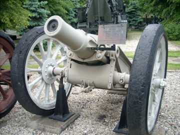 In 1914 these howitzers were equipped with large wooden wheels. It is likely this survivor is one of the weapons given to Russia by Great Britain in 1916 |