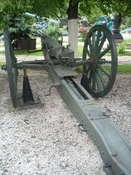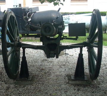 In 1900, one of the two Russian guns manufacturers delivered the '76.2 mm fieldgun M1900'. This was the first Russian gun to be equipped with a recoil recuperation system, but this one was rather special : the barrel was linked to a sliding beam that could move on the tail. An hydraulic brake strengthened by rubber rings (Engelhardt process) was placed inside the tail. |