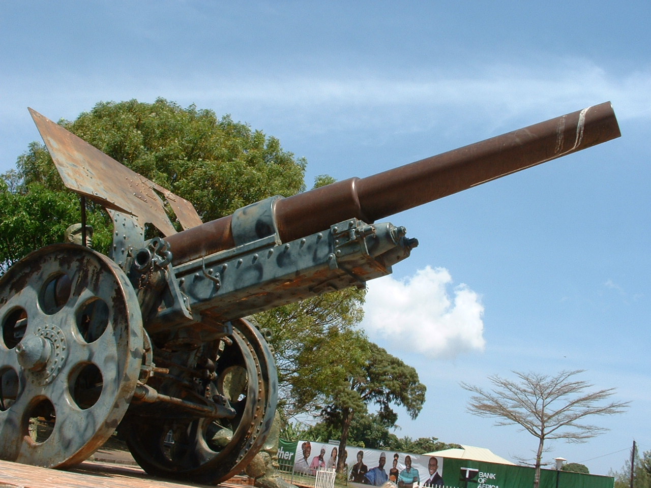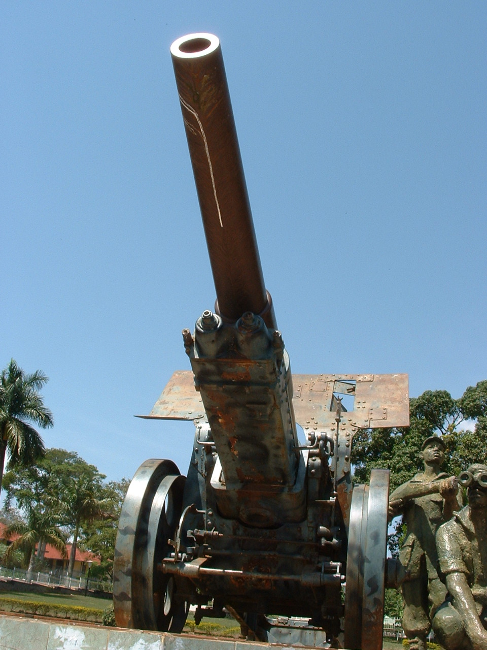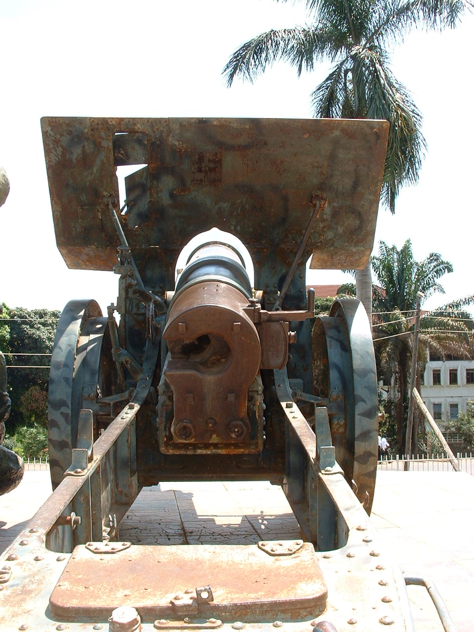 This rare gun, in a very good preservation state, is now integrated in a strange monument offered by the 'beloved' President Idi Amin Dada to the Ugandese people after the Tzahal raid on Entebbe in 1976.