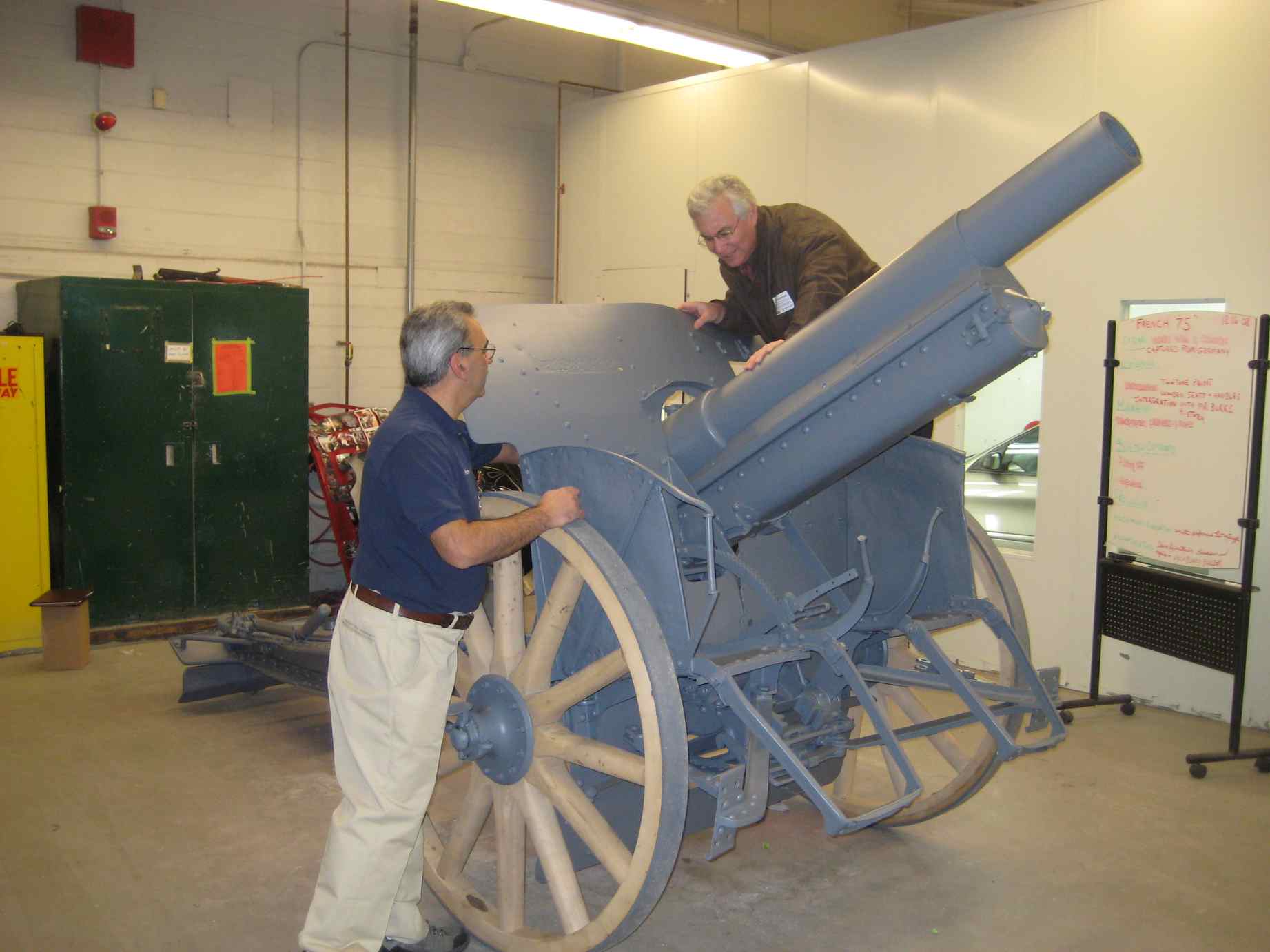 The members of the l'Andover Patriotic Committee refurbishing that nice howitzer, to expose it on the communal green at Memorial Day 2009.