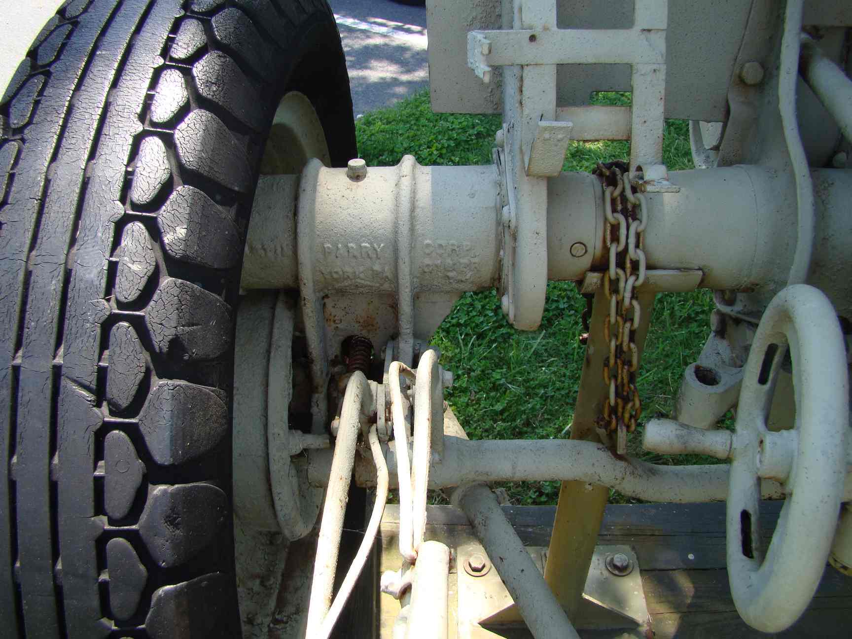The markings on some elements of the wheel system are a proof of the modernization made by a US company in 1938 (Martin-Parry Corp., York, PA) |