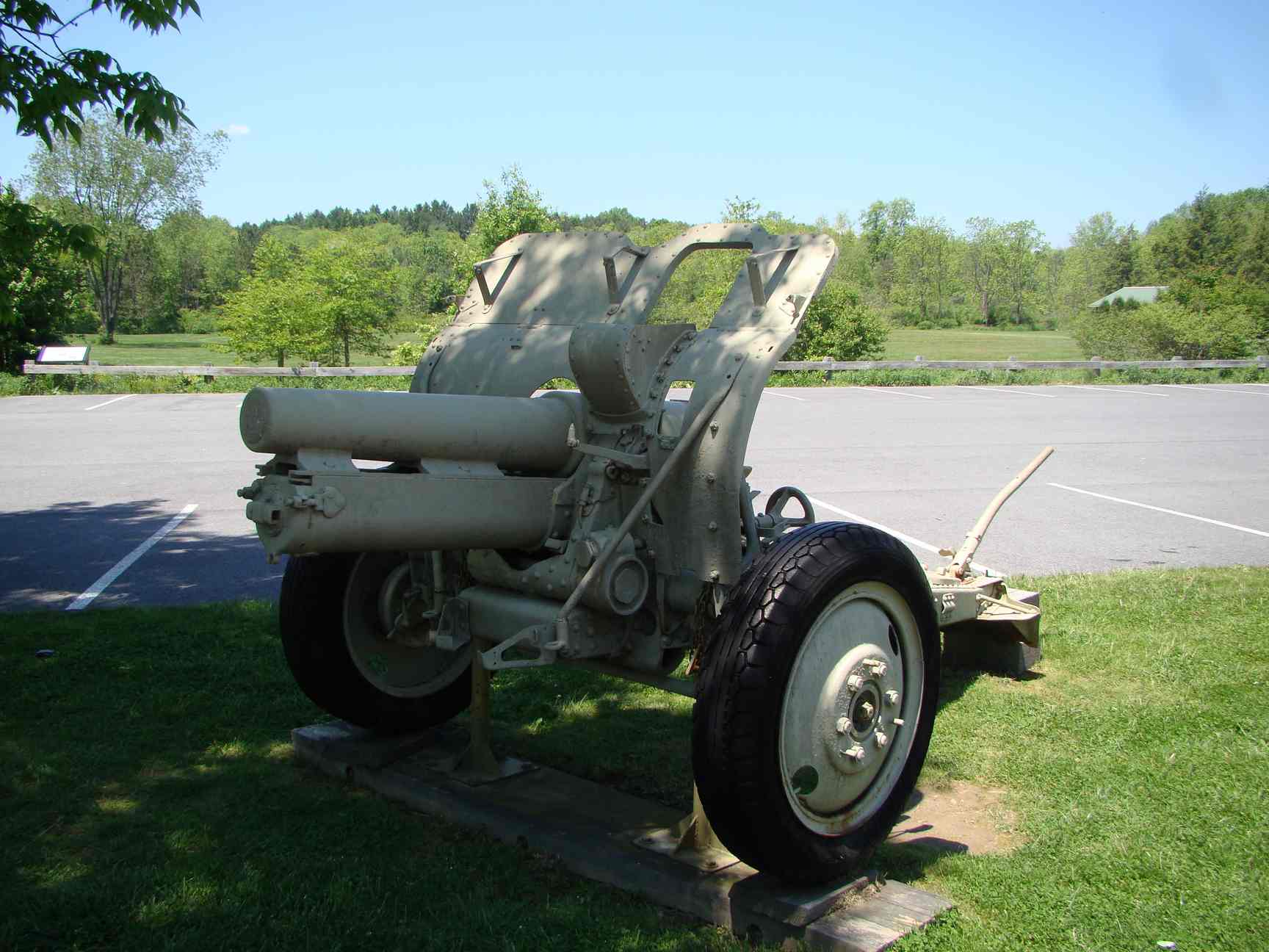 Side view, the pneumatic wheels tells this howitzer, manufactured during WW1 and used by Canadian forces, has been in service between WW1 and WW2, and perhaps during WW2 |