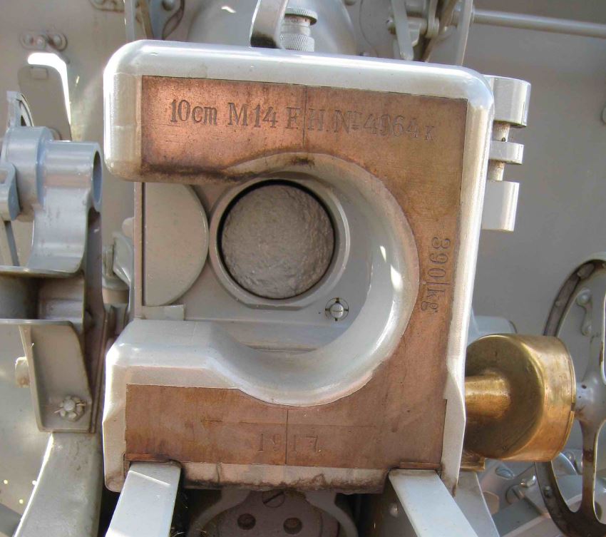 Breech markings : '10cm M14 FH Nr4964k - 1917'; carriage markings : 'Skodawerke Pilsen - Nr142 - 10cm M14 F.Hb.'