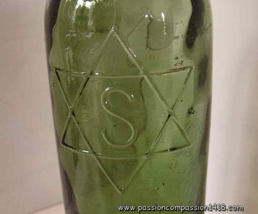 The bottle at the left has the particualrity of beeing decorated with a Salomon's star. I thought this was related to a Jewish beermaking company, but it appears that the 6 branches star was the symbol of the beermakers in Germany (thank you to all you people who sent me details about that). Anyway, this reminds us that during WW1, Aryan Germans and Jewish Germans were fighting together in the same trenches...