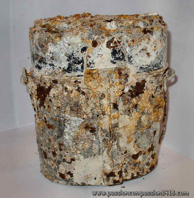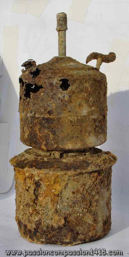 French acetylene lamp, designed for coal-mining, and given as additionnal lighting material to troopers. Found near Hurtebise, on the Ladies' Way. That object perhaps offered a little comforting light to some soldiers hiding underground in a heavily shelled shelter...