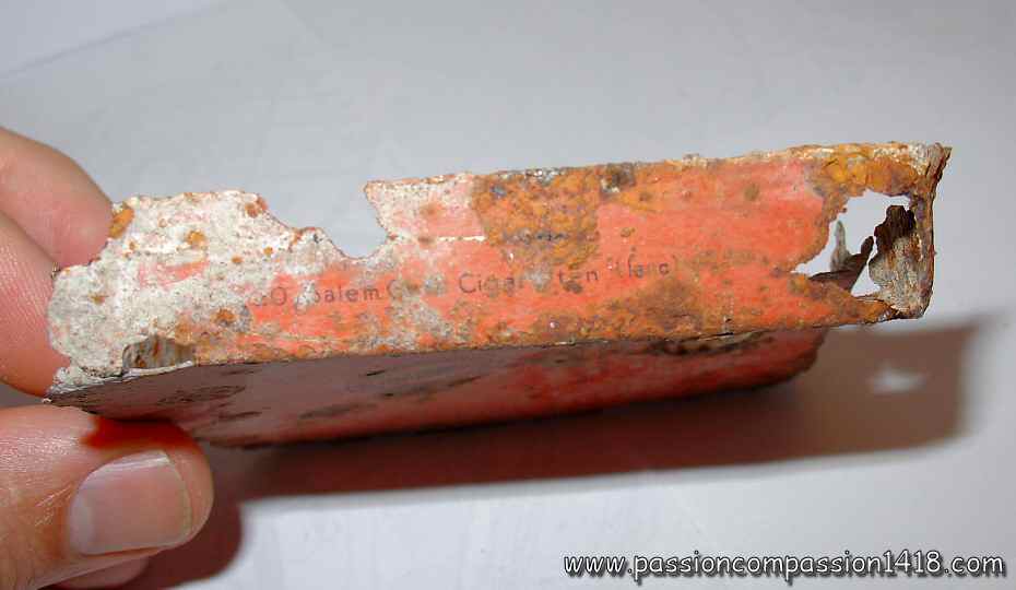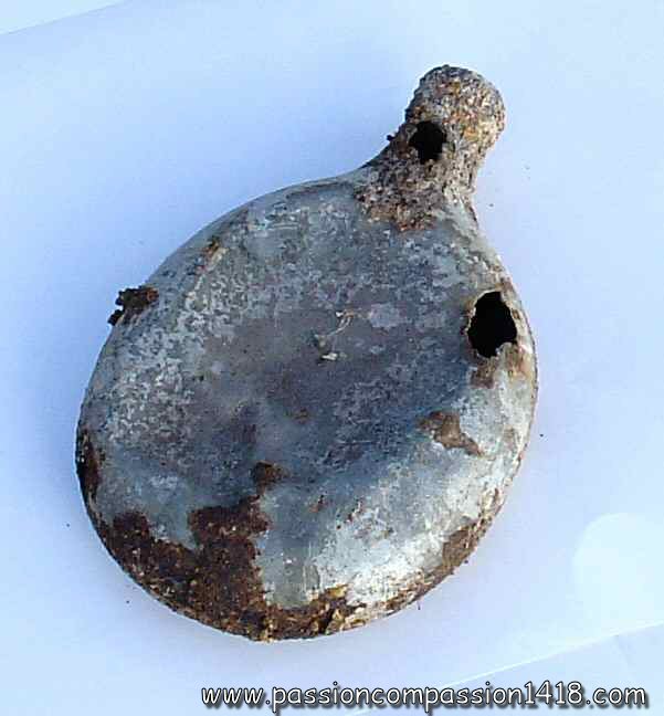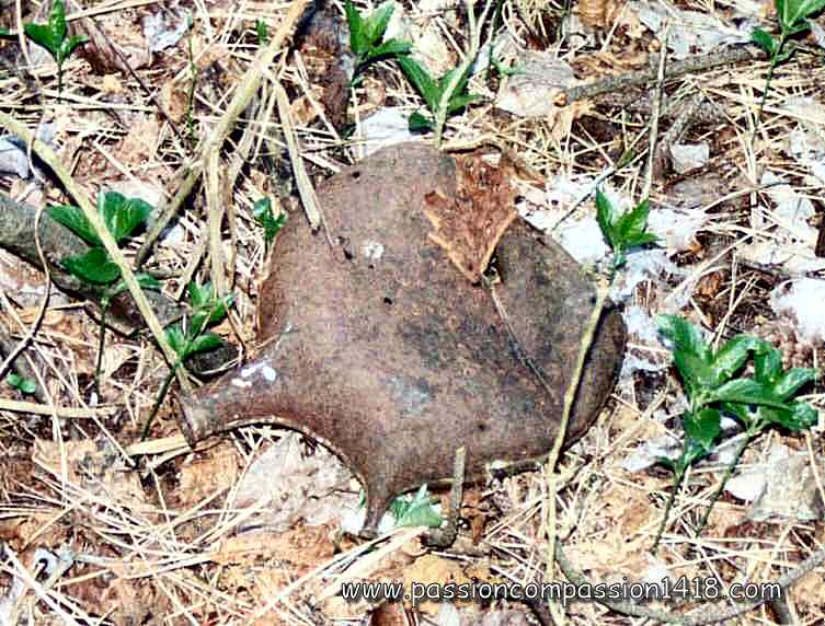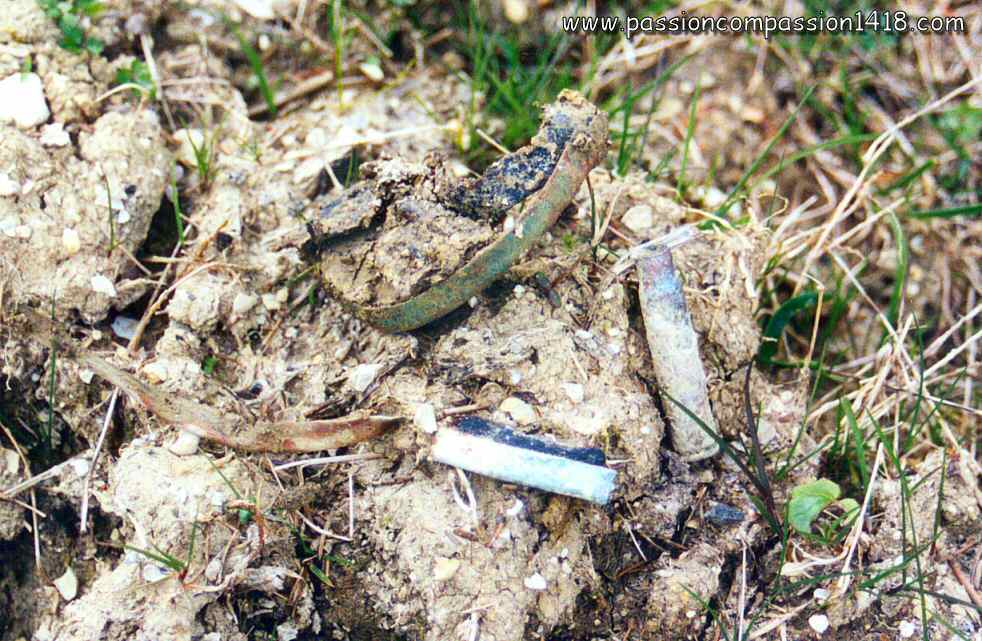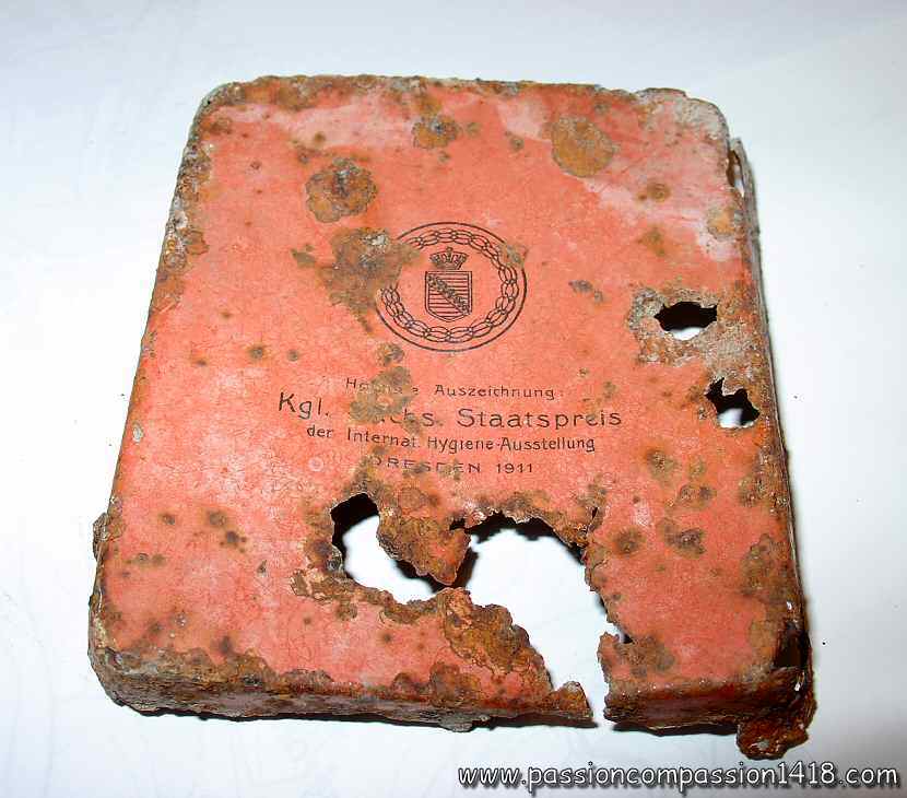 Tons of various materials, bring by the soldiers, were spread on the front zone. This dump ground, amongst what the fighting men were living, is still visible on the former battlefields, and the pieces that can be found are somtimes really touching..