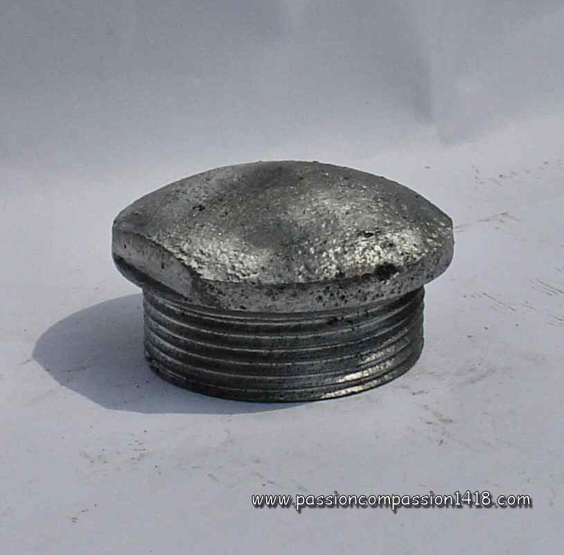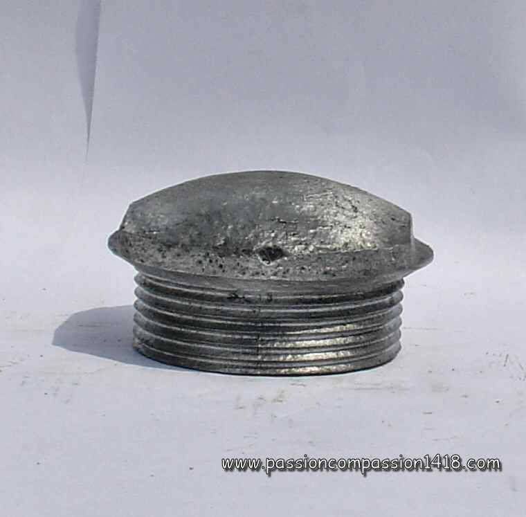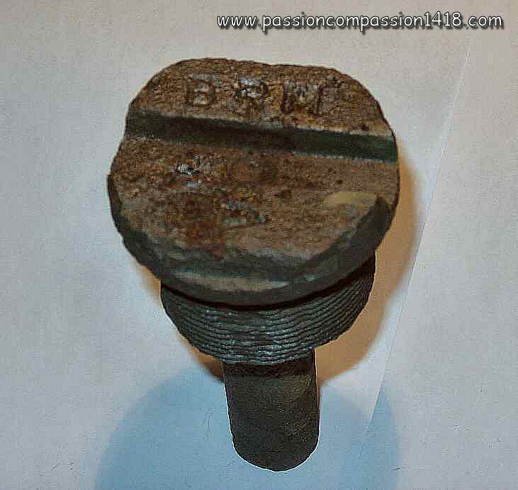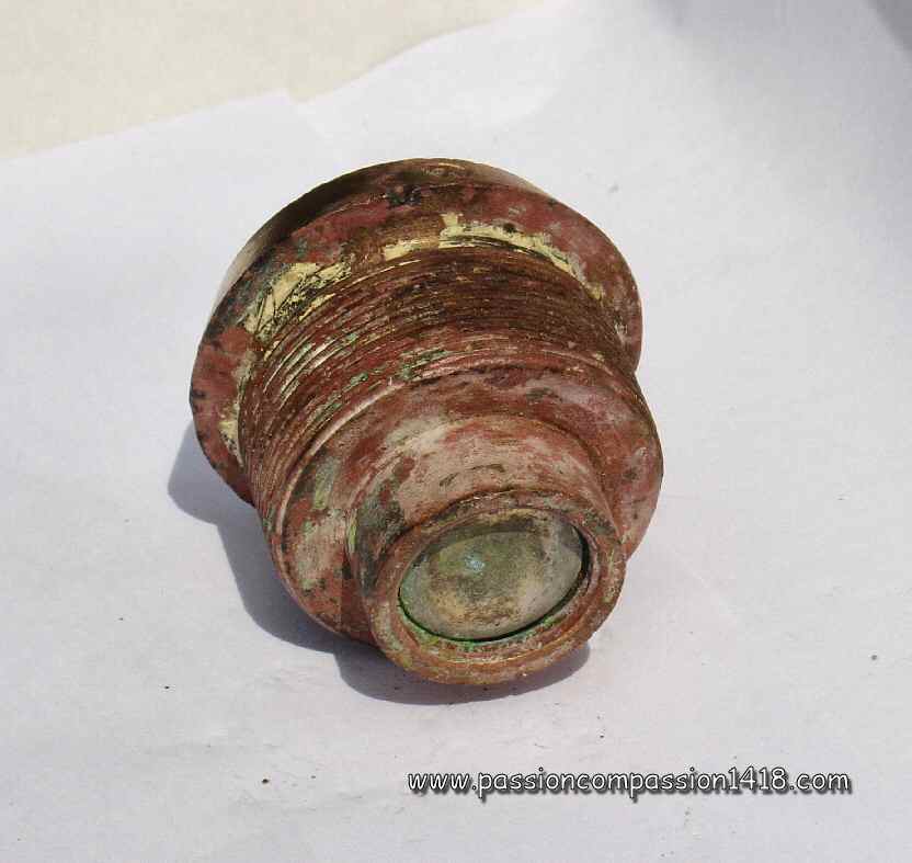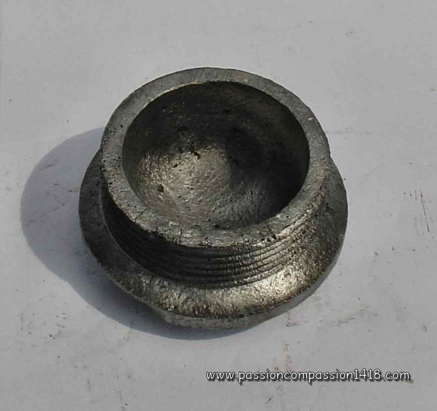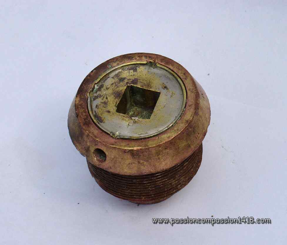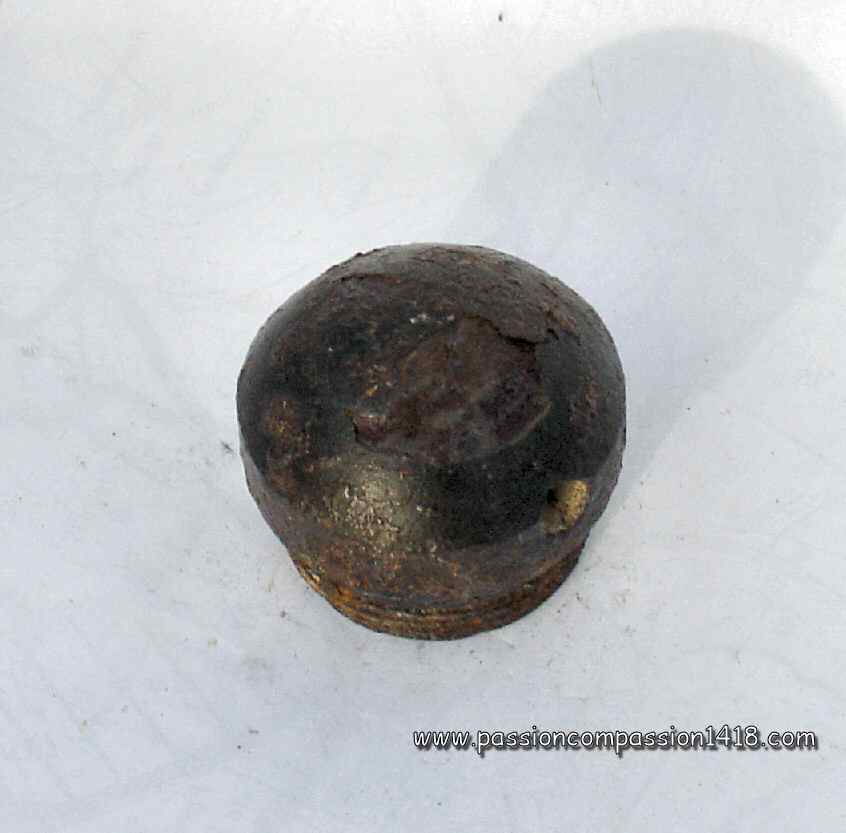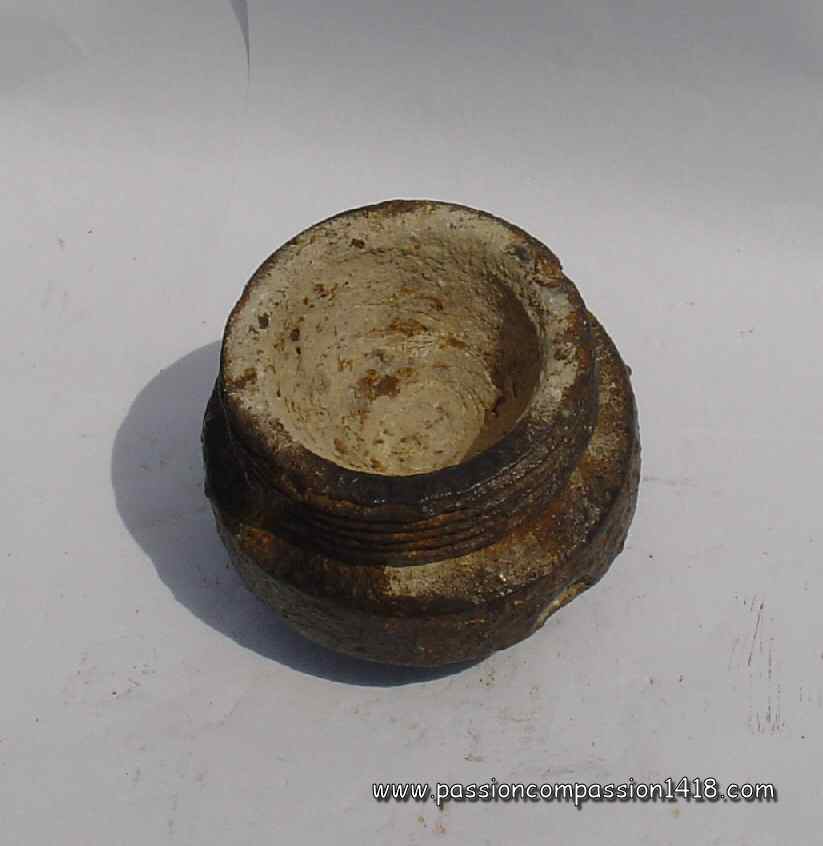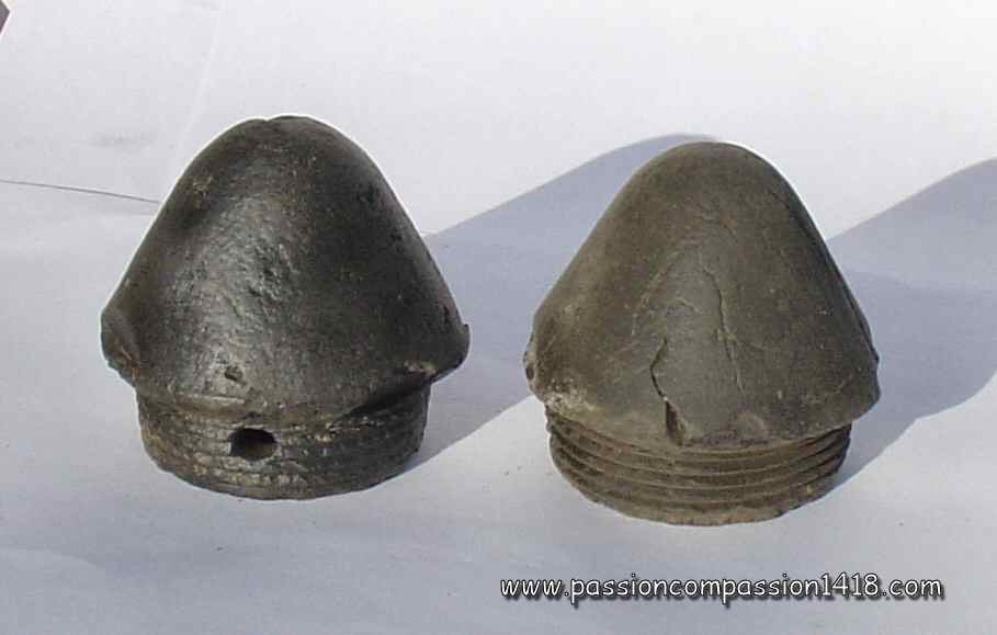For a long time I thought these pieces were some kind of rear fuzes. But it is in fact very unharmful English plugs. Their shape is made to take the place of the fuze tail and the detonateor in the shell charge. there are several varieties of that plug, with different head markings and shapes. The thread diameter is 50 mm. |