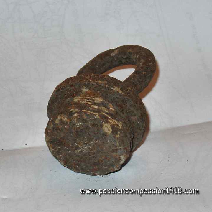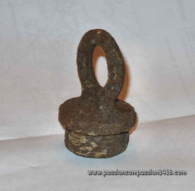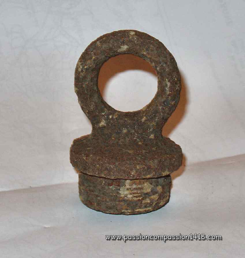 That plug type is often observed on some old pictures mounted on English heavy caliber shells. It is made of steel, and integrates a transportation hook. The thread diameter is 50 mm. |