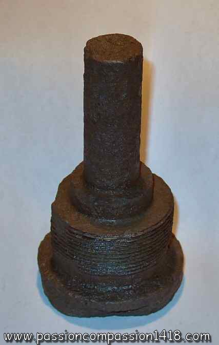 That plug type has been seen in some museums mounted on German heavy caliber shells. It is a steel piece, with a hole for the introduction of a transportation hook. The thread diameter is 59 mm |