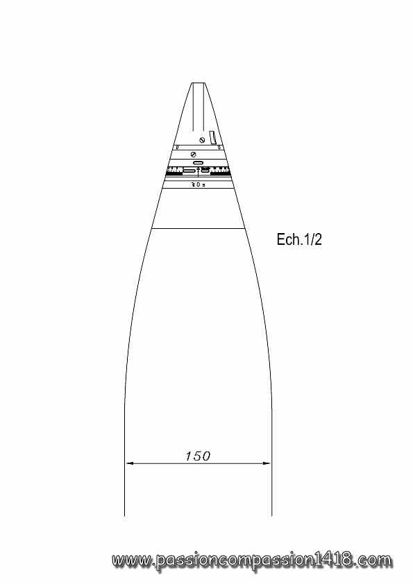 Czech conical fuze on 150 mm shell, modern drawing from JL Decherit |