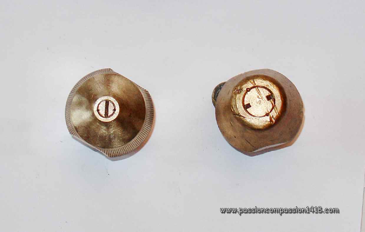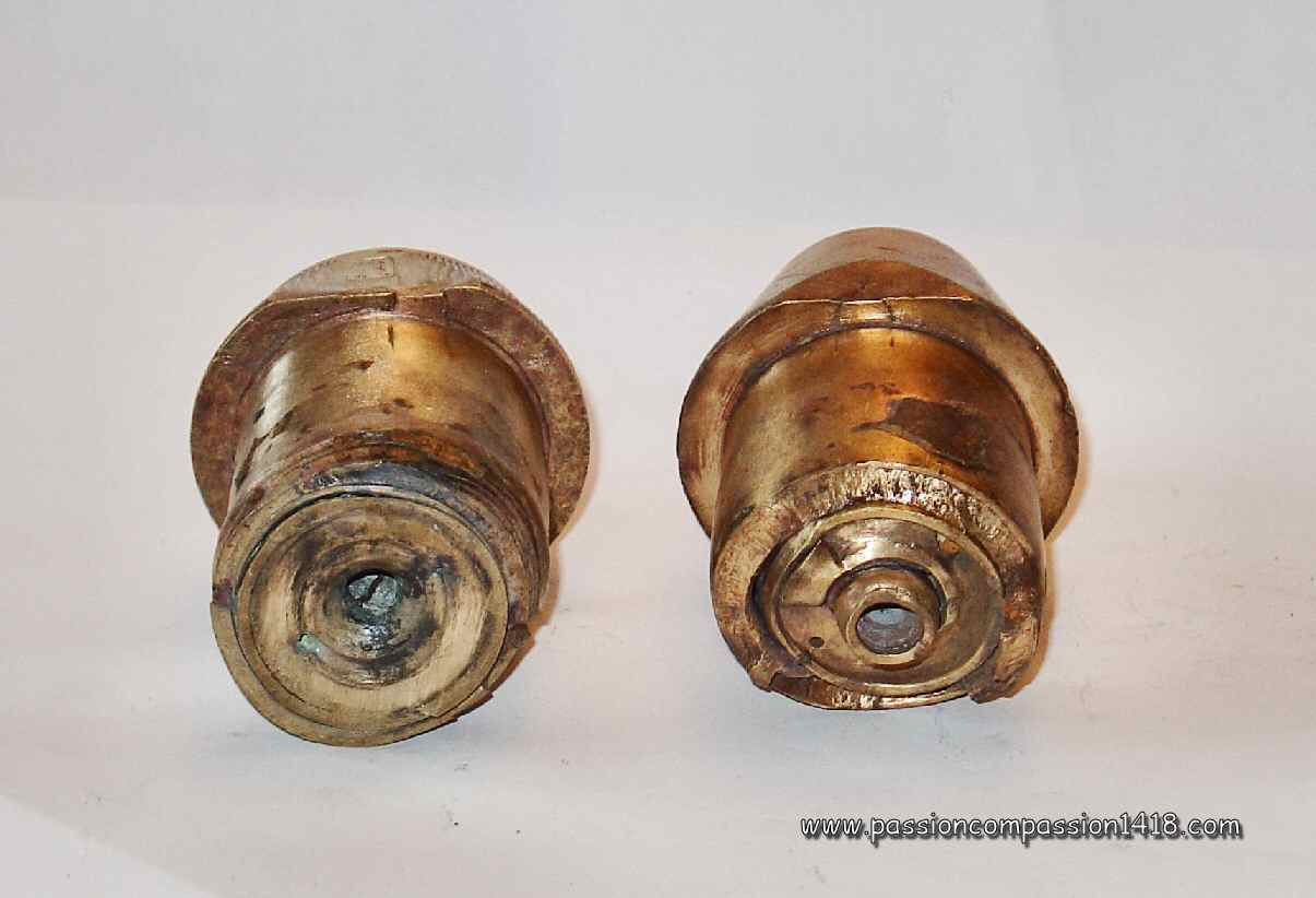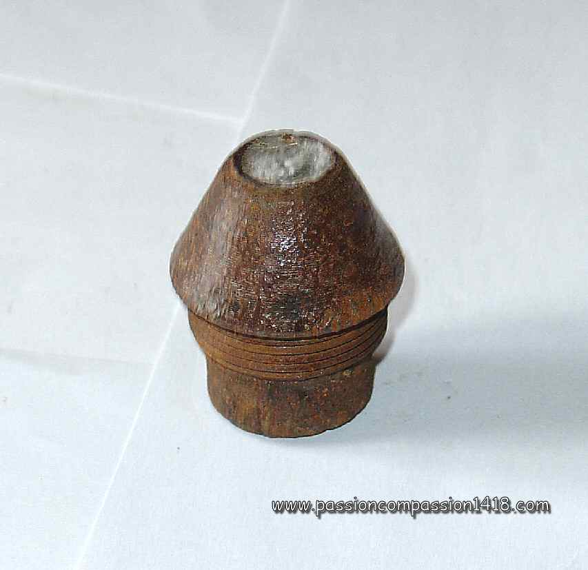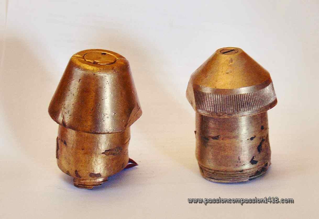 It shows big similarities with the fuse-detonator Mle 1915 for middle caliber shell Schneider, descibed with the other French fuses in this website. The size of its tail, the look of the percussion mechanism that is in the tail, as well as the presence of a screw on the to of the fuse are very important clues. But the head shape is totally different. It is probably a variant of this Scheider fuse, but I can't find any confirmation of this hypothesis... |