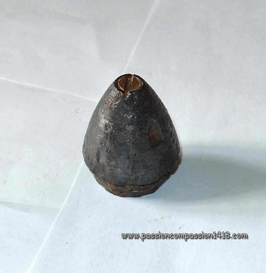 This fuse has been observed in the Vosges area, in france, where fight occured in both WW1 and WW2 conflicts. Unknown small steel fuse with top head hole.