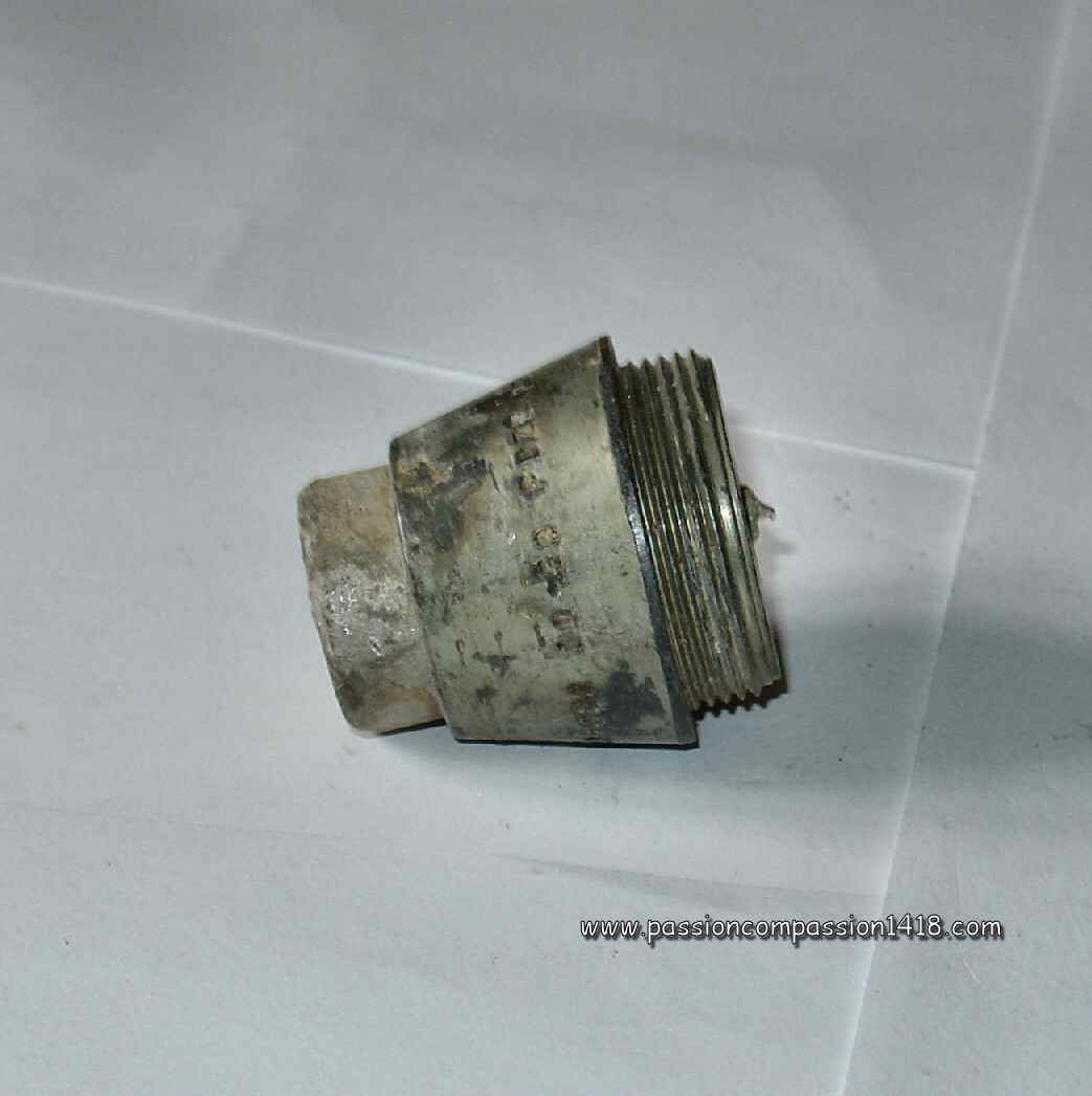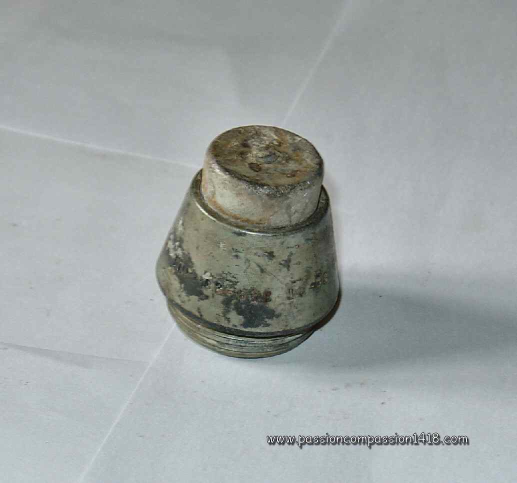 This fuse has been observed in the Vosges area, in france, where fight occured in both WW1 and WW2 conflicts. US WW2 M52 small alumium fuse part.