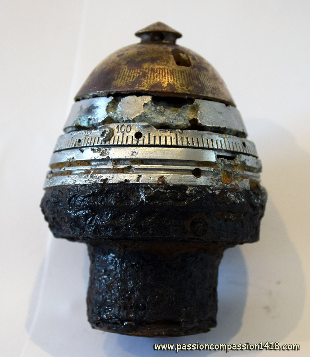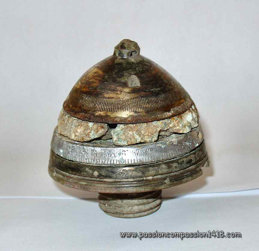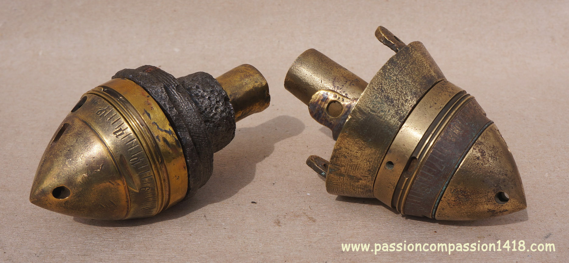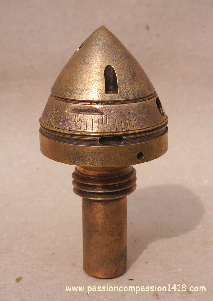 An interesting fact about the particular fuze shown in the pictures is that this one has been observed on a western front WW1 battlefield, proving the German Army was using captured Russian guns and ammo in France. |