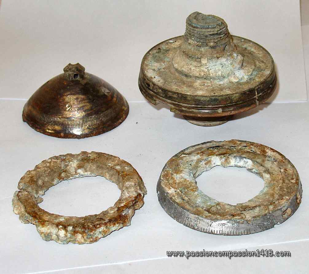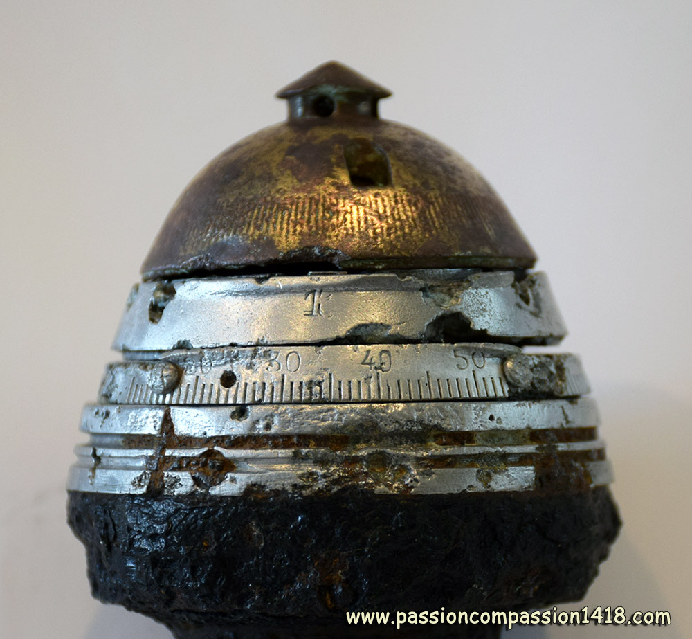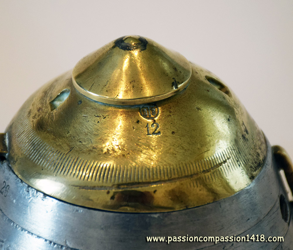 An interesting fact about the particular fuze shown in the pictures is that this one has been observed on a western front WW1 battlefield, proving the German Army was using captured Russian guns and ammo in France. |