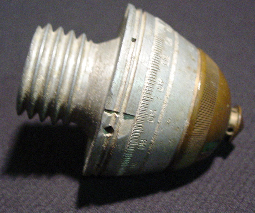 Percussion fuze type 6 GT. Steel and brass body. No markings visible. |
