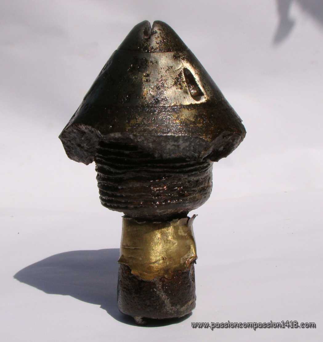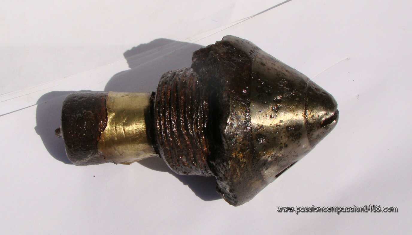 Percussion fuze type 6 GT. That fuze has been observed in Massiges, Champagne (France). It is certainly a munition shot by the German Army with a Russian gun captured on the eastern front |