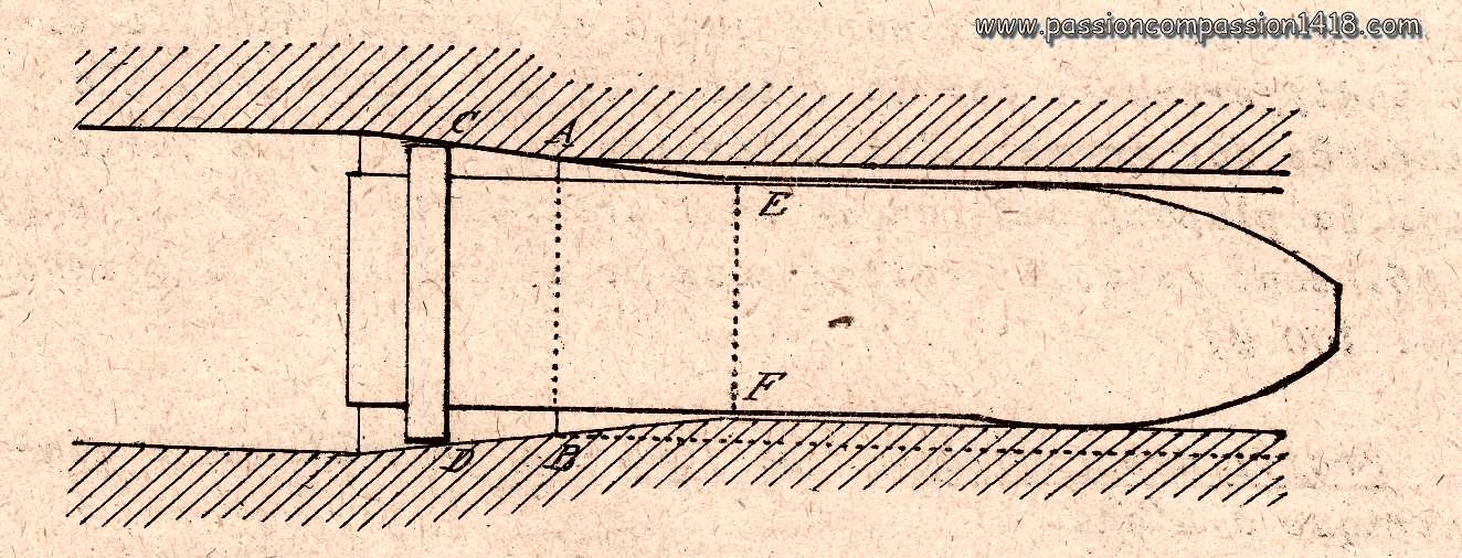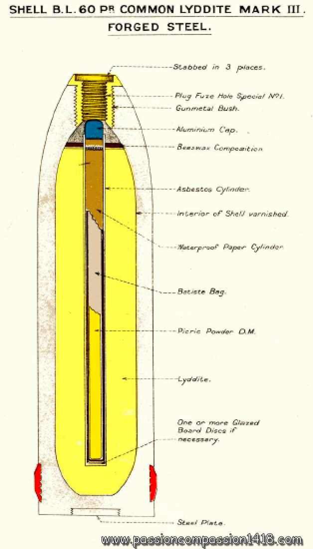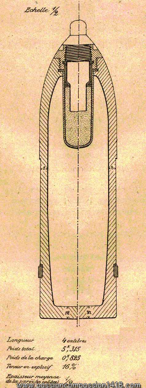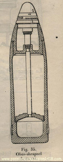 France had a similar experience, equally short and disappointing, with their 'Robin shell' also named 'Mixed charge shrapnel shell', that did not have a bottom chamber for the rear burst charge. |