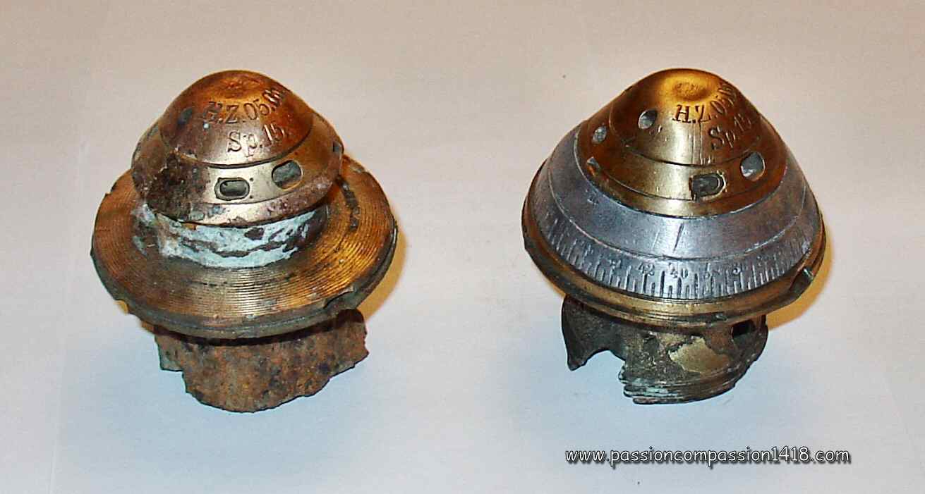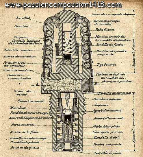The fuzes that can still be found nowadays in the ploughings, embedded in earth or chalk and half destroyed, are remnants of precision mechanics and pyrotechnics systems... For a good understanding of the explanations and diagrams of the section 'WW1 fuzes', one might want to take some time to familiarize himself with some technical concepts of WW1 fuzes mechanics and pyrotechnics, one of the impressive examples of the human creativity at the service of crime and horror...