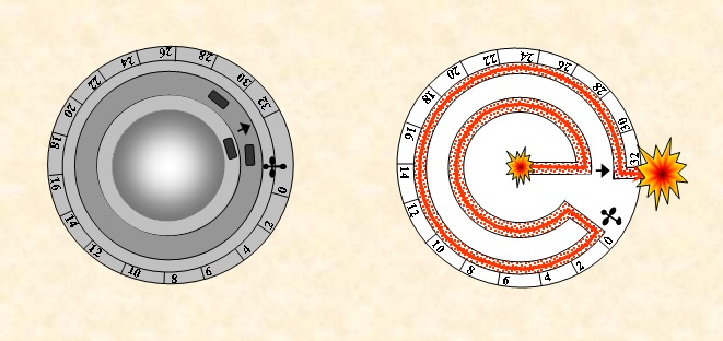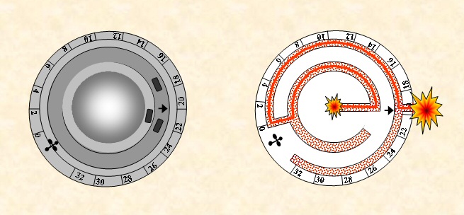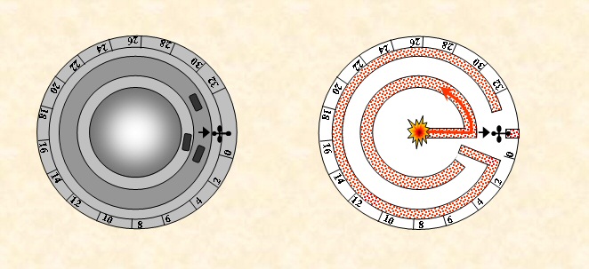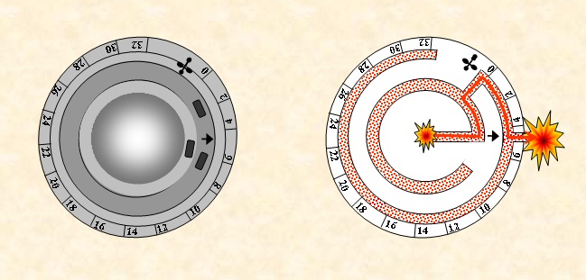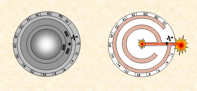 Another classical way of arming fuzes after the departure of the gun was to take the opportunity of the spin movement of the shell when fired with a rifle bore tube. This rapid movement gave way to very high centrifugal forces in the shell and fuze.