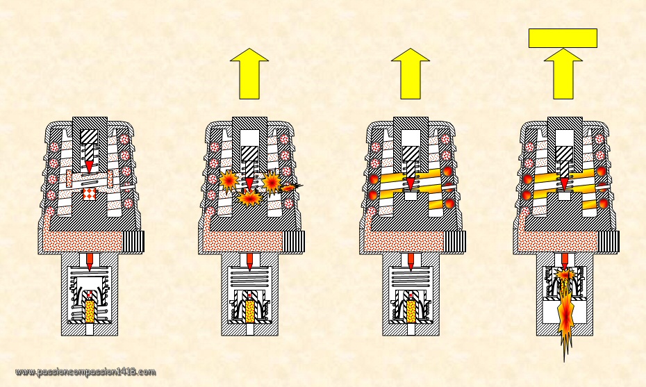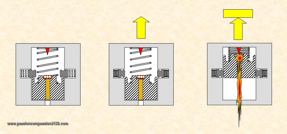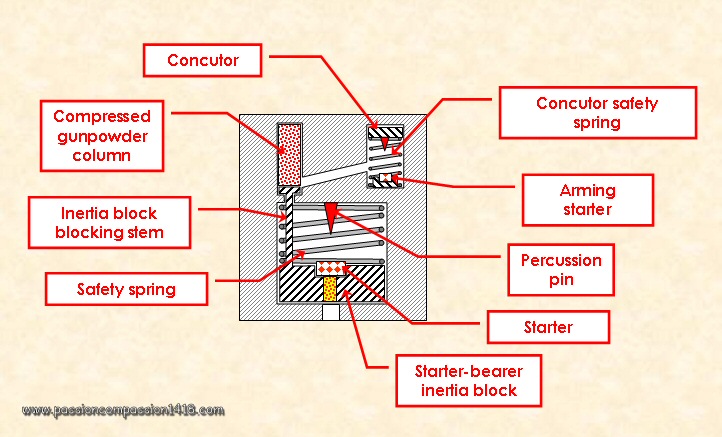 But another danger existed within the gun itself at the very first instants of the fuze active life : the brutal acceleration of the departure could also cause premature triggering of the fuze and shell explosions still in the barrel, often destroying both the material and its servants... This was another reason for designing safety and arming techniques that would avoid such catastrophies.